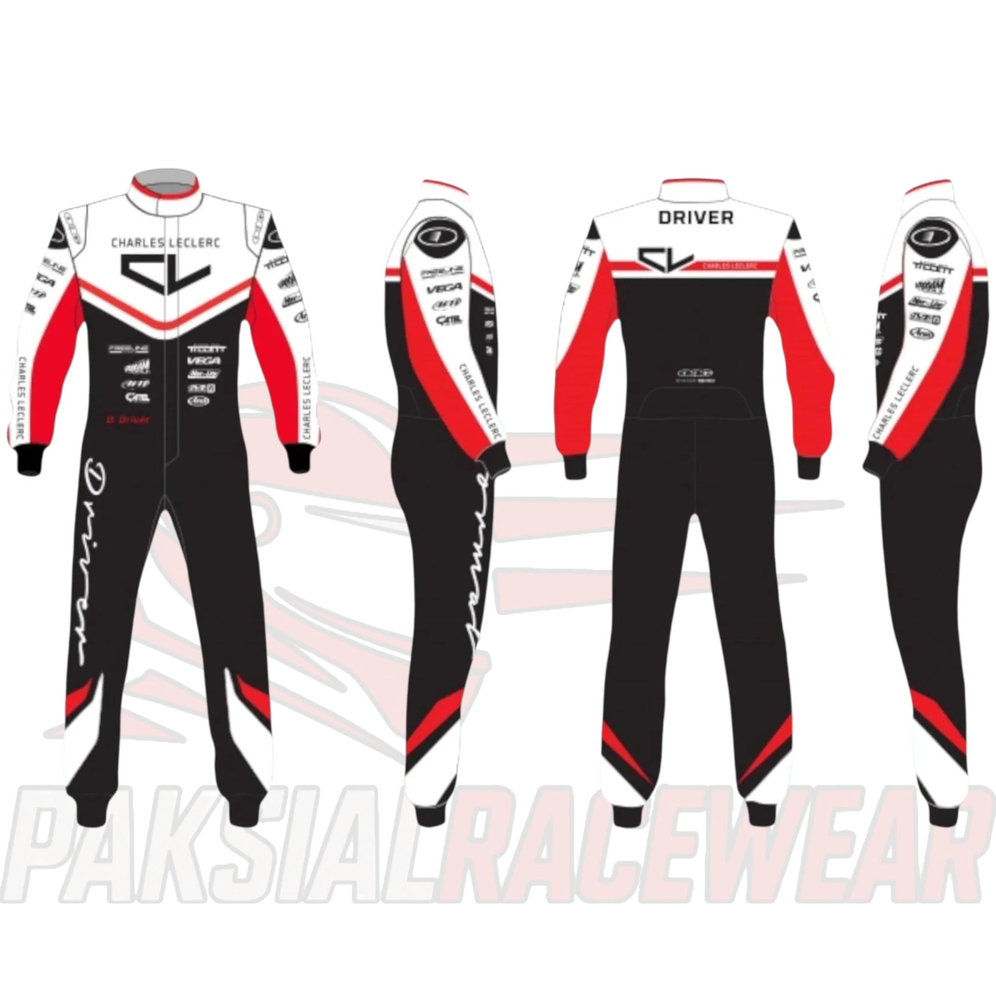 Crafted from lightweight, breathable materials, it ensures maximum comfort and performance during intense karting sessions. Featuring authentic detailing and sleek design, this suit is perfect for drivers, collectors, and Charles Leclerc fans alike.