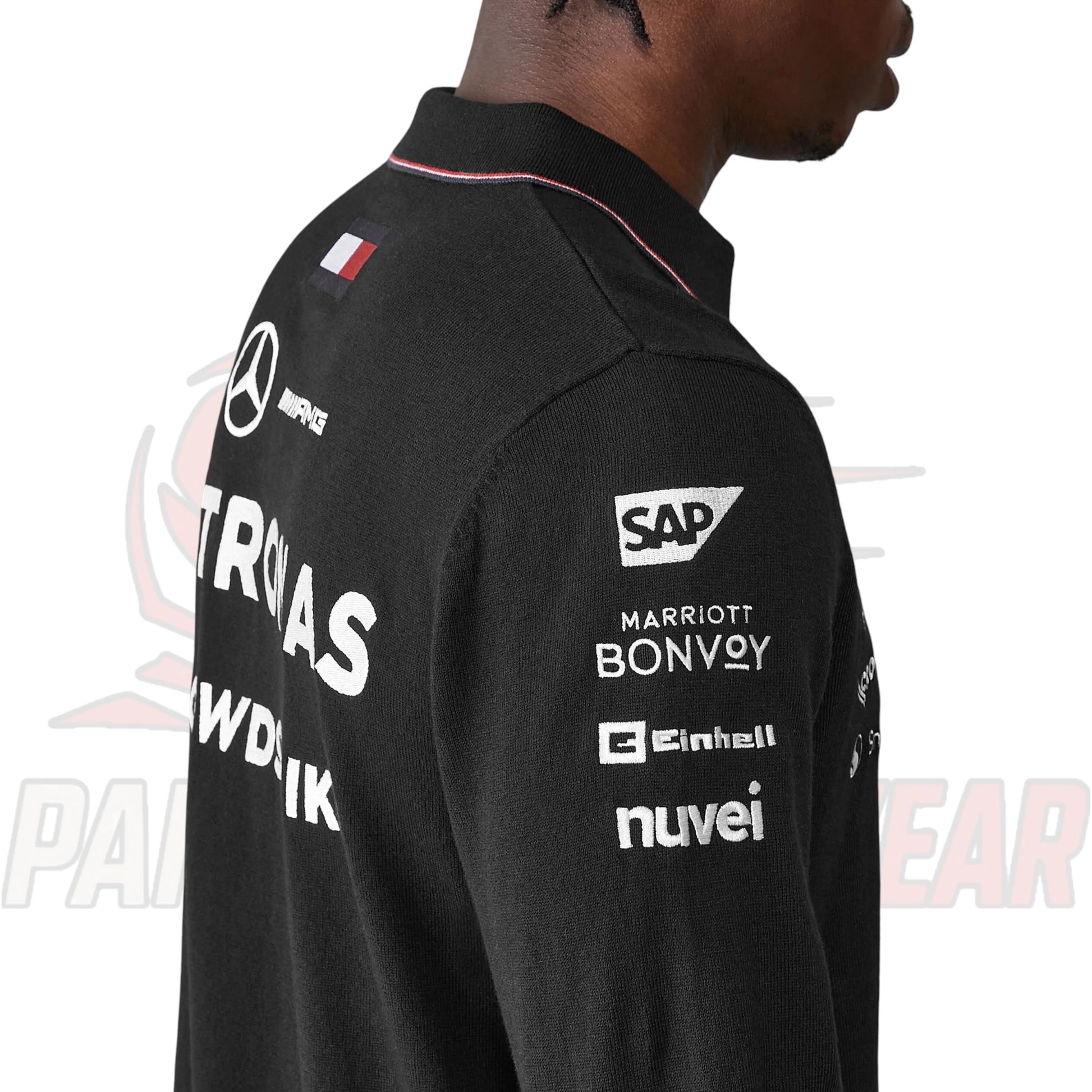 Elevate your race-day style with the Mercedes-AMG Petronas F1 2024 Team Polo – Long Sleeve Edition, a perfect fusion of sophistication, performance, and Formula 1 spirit.