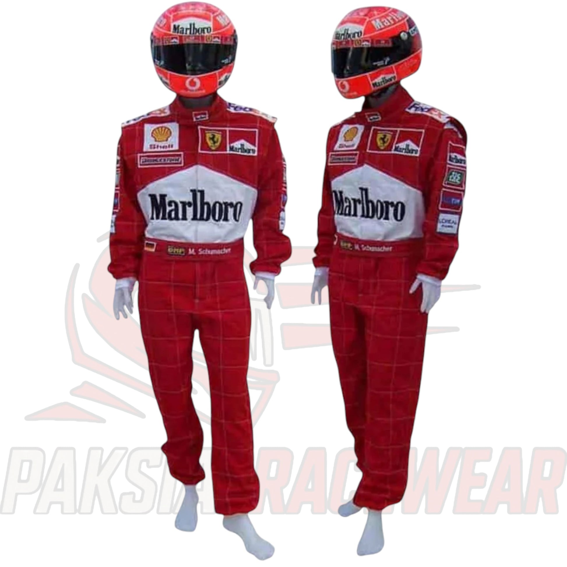 Bring Schumacher’s Ferrari legacy to life with this 2001 printed F1 suit, built for karting and motorsport enthusiasts.