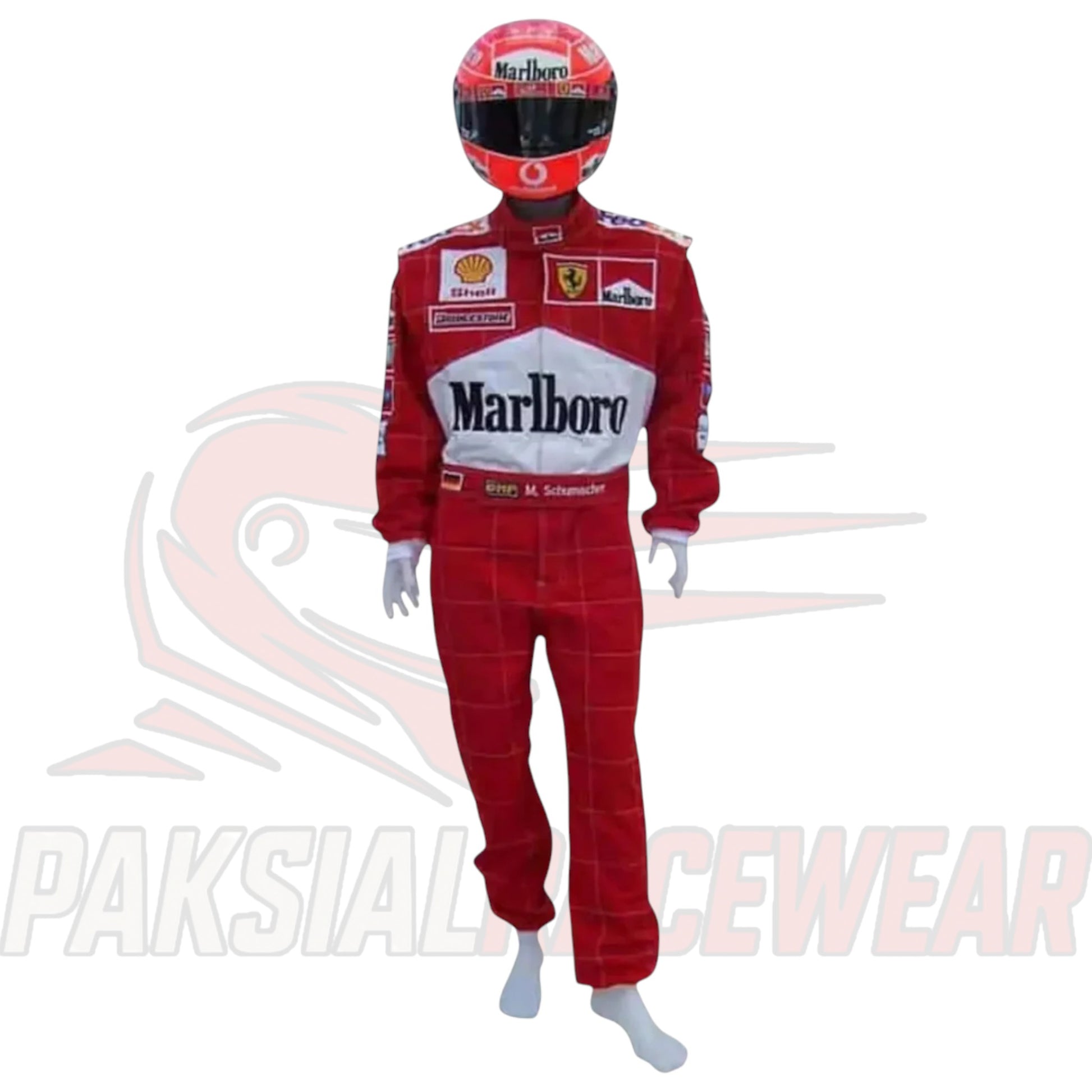 Relive the dominance of Ferrari’s golden era with the Michael Schumacher 2001 Ferrari F1 Racing Suit – Marlboro Edition, expertly recreated by Paksial Racewear.