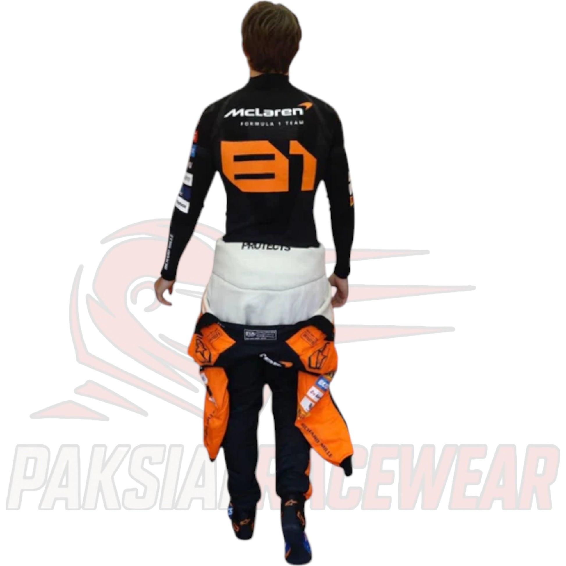Expertly crafted by Paksial Racewear, this replica captures the official 2025 McLaren F1 design, blending the team’s signature papaya orange and deep black tones with accurate sponsor logos, race detailing, and professional stitching for a true-to-original finish.